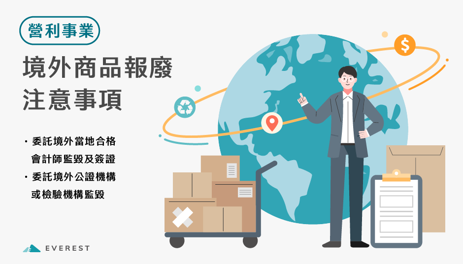 營利事業辦理境外商品就地報廢時,如委託境外當地合格會計師監毀及簽證,或委託境外公證機構或檢驗機構監毀,除應事前報請稽徵機關核備外,並應取具相關證明文件,以免因不符稅法規定,遭稽徵機關調整補稅,影響自身權益。