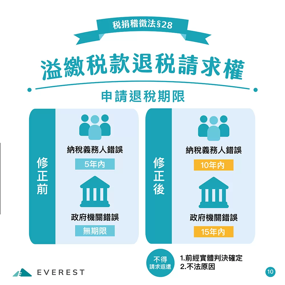 稅捐稽徵法是所有稅捐徵收的基本大法,為了維護民眾權益、減輕負擔,同時實現租稅公平、保障國家債權,財政部在綜合各界意見後,推動立法以來最大幅度的修法案(共修正27條)終於在朝野黨團共識下11/30立法院三讀通過!除了第20條由行政院另定施行日期外,其餘條文等總統公布後施行。接下來,相關辦法及配套措施將儘速辦理,也會請國稅局加強宣導、向外界充分說明。