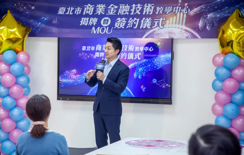 蔣萬安表示,台北市政府非常重視技職教育,在他上任後成立了技職股,同時,在各領域已簽28個產學合作備忘錄,5月也曾揭牌啟用「內湖高工智慧設施應用與維修技術教學中心」,本次成立的台北市商業金融技術教學中心,更是全台首創第一座商業虛擬金融中心。這是歷史性一刻,也是是臺北市產學合作很重要的里程碑,未來希望透過這樣的模式,讓孩子們可以順利銜接職場,也讓產業界很順利地找到人才。