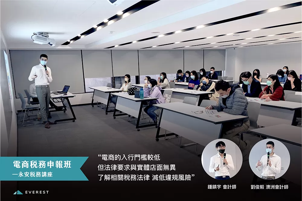 永安聯合會計師事務所「鍾鎮宇會計師」與「劉俊毅會計師」近期舉辦了稅務講座,內容著重於分享經營電商所面臨的稅務問題。並以過往案例,分析經營電商易忽略的法律規範,及其後果。